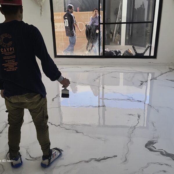 Son acabados de tendencia para casa, oficinas donde se le pueden dar efectos marmoleados y donde son fácil de limpiar, estos pisos igual son uniformes y se ven en una sola pieza. Y cuenta con todas las características de resistencia a la abrasión y compresión.